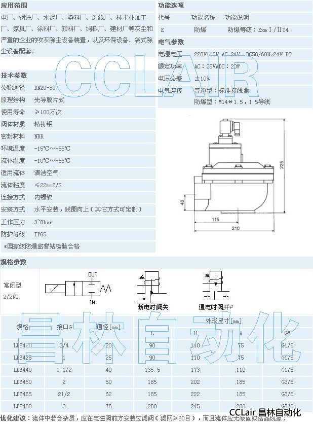 LD6420,LD6425,LD6440,LD6450,LD6465,LD6480,電磁脈沖閥