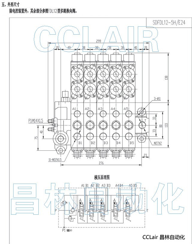 SDFDL12-5H/E24,手動(dòng)電控多路換向閥