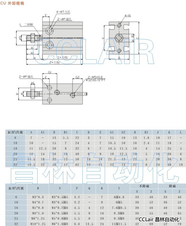 CU-20X30-S,CSU-20X30-S,CTU-20X30-S,CUD-20X30-S,CUJ-20X30-10-S,自由安裝氣缸