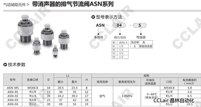 ASN-M5,ASN-01,ASN-02,ASN-03,ASN-04,帶消音器排氣節(jié)流閥