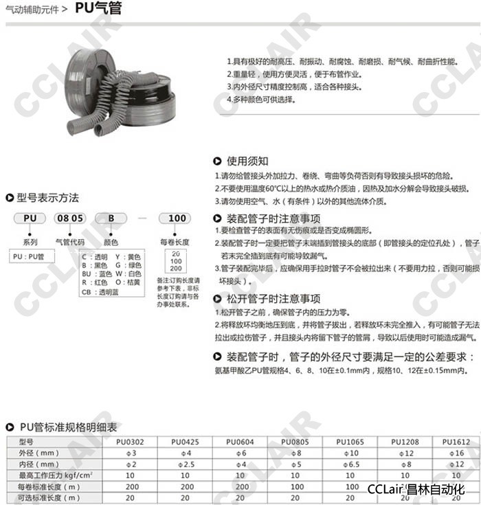 PU0302G-100,PU0425G-100,PU0604G-100,無錫昌林,PU0805G-100,PU1065G-100,PU1208G-100,PU1612G-100,