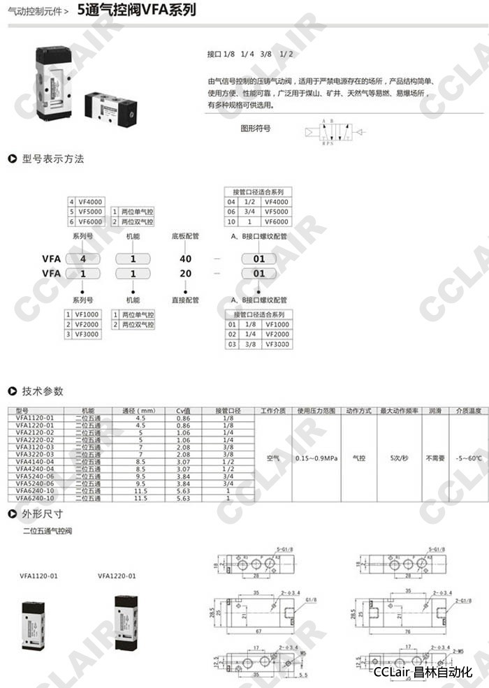 VFA4140-04,VFA4240-04,VFA5140-06,VFA5240-06,VFA6140-10,VFA6240-10,5通氣控閥