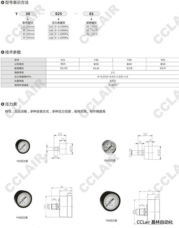 Y25-100,Y30-100,Y40-100,Y50-100,Y25-160,Y30-160,Y40-160,Y50-160減壓閥用壓力表