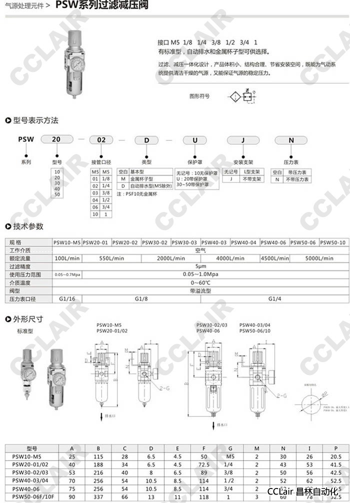 PSW20-MS,PSW20-01,PSW20-02,PSW20-03,PSW20-04,PSW20-06,PSW20-10,氣動過濾減壓閥