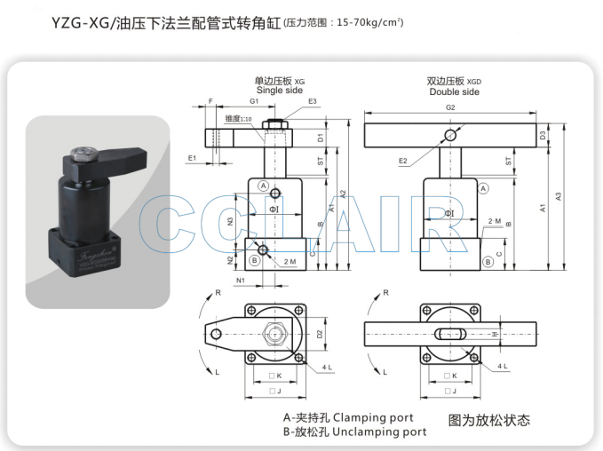 YZG-XG25,YZG-XG32,YZG-XG40,YZG-XG50,YZG-XG63,油壓下法蘭配管式轉角缸,無錫昌林