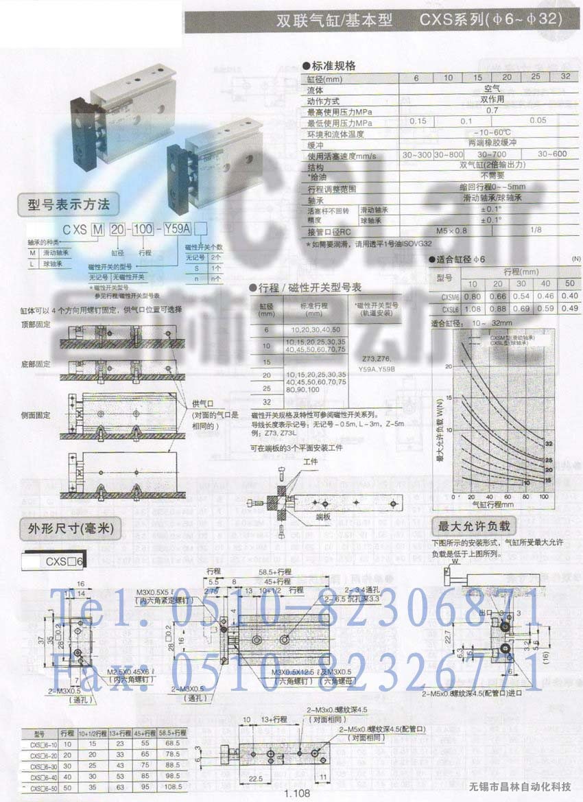 CXSL20-70-Y59A,CXSL20-70-Y59B,CXSL20-75-Z73,雙聯(lián)氣缸,