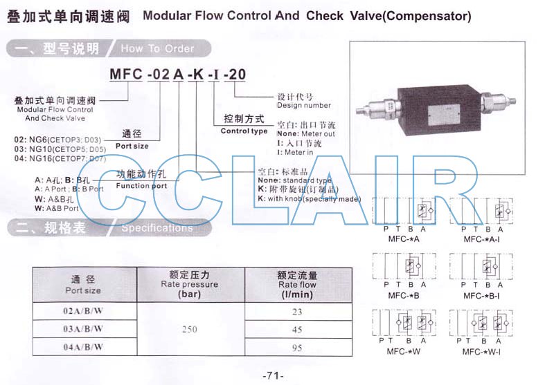 MFC-02A,MFC-02W,MFC-03A,MFC-03W,MFC-04A,MFC-04W,疊加式單向調(diào)速閥