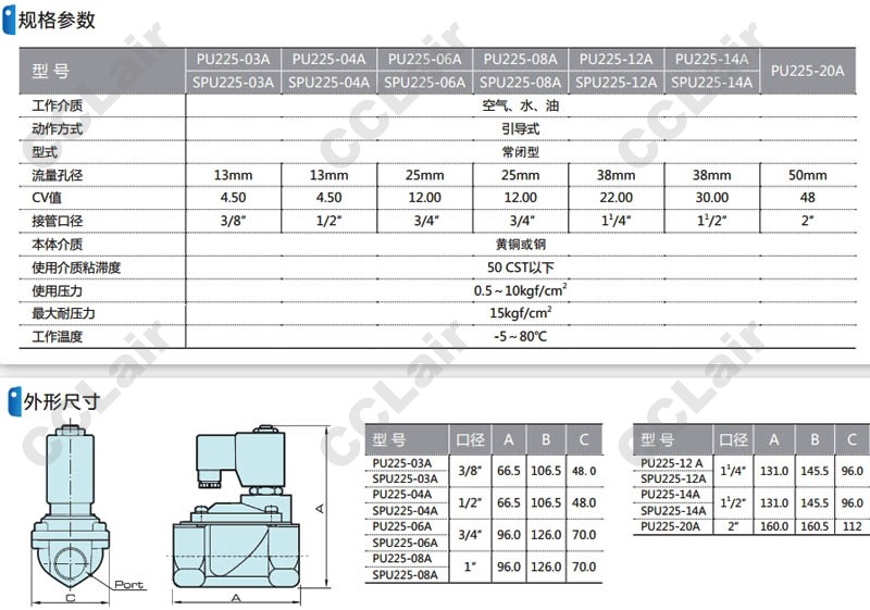 PU225-03,PU225-04,PU225-08,PU225-12,PU225-14,SPU225-20,SPU225-12-A-AC110V,電磁閥