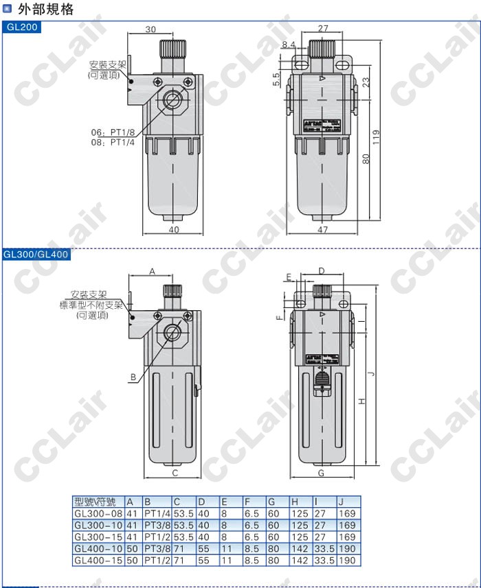 GL200-06-J-G,GL200-08-J-G,GL300-08-J-G,臺灣亞德客(AirTAC),GL300-10-J-G,GL300-15-J-G,
