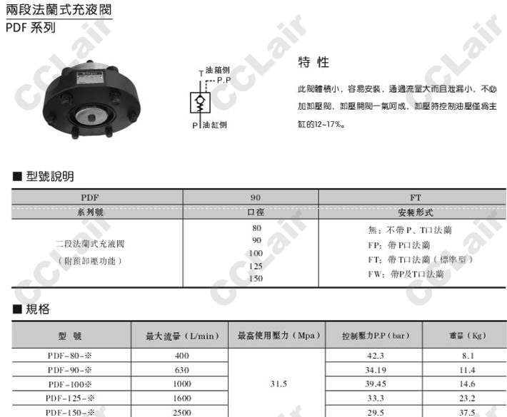 PDF-80,PDF-90,PDF-100,PDF-125,PDF-150,PDF-80-FP,PDF-90-FT,PDF-100-FW,二段法蘭式充液閥