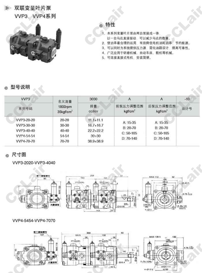 VVP3-20-20,VVP3-30-30,VVP3-40-40,VVP4-54-54,VVP4-70-70,雙聯(lián)變量葉片泵