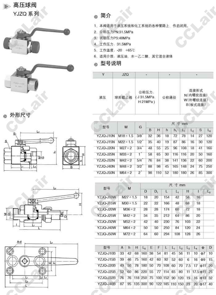 YZJQ-J10N,YZJQ-J15N,YZJQ-J20N,YZJQ-J25N,YZJQ-J32N,YZJQ-J50W,YZJQ-J50B,高壓球閥