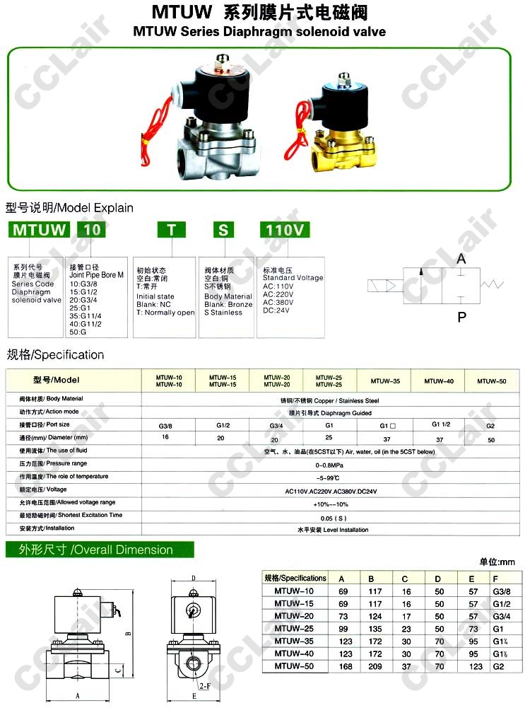 MTUW-10,MTUW-15,MTUW-20,MTUW-25,MTUW-35,MTUW-40,MTUW-50,膜片式電磁閥 |