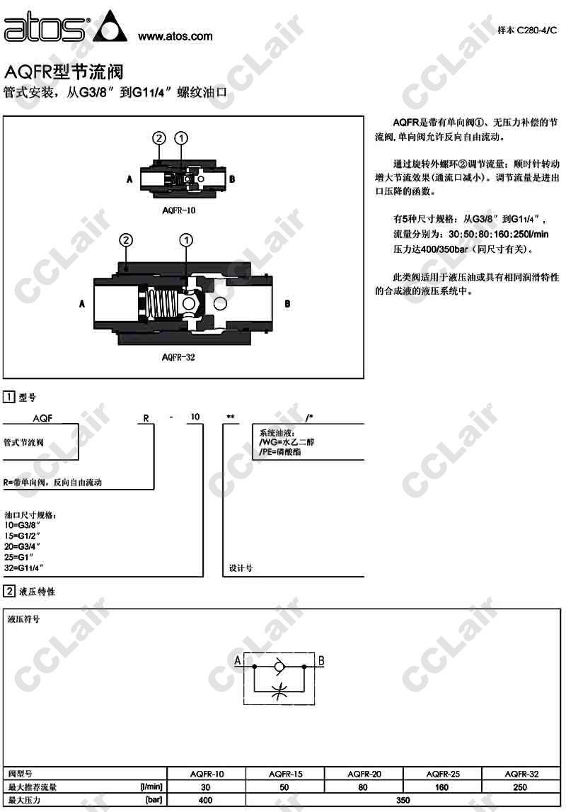 AQFR-10,AQFR-15,AQFR-20,AQFR-25,AQFR-32,阿托斯ATOS節(jié)流閥