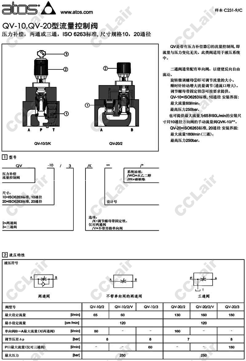 QV-10/2/K,QV-10/2/V,QV-10/3/K,QV-20/3/V,QV-20/2/K ,QV-20/2/V,QV-20/3/K,QV-20/3/V,阿托斯ATOS流量控制閥
