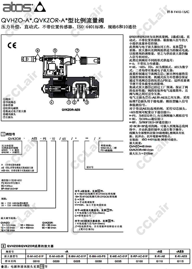 QVKZOR-A,QVKZOR-AE,QVKZOR-AES-BC,QVKZOR-AES-BP,QVKZOR-AES-PS,QVKZOR-AES-PS-10/65,阿托斯ATOS比例流量閥