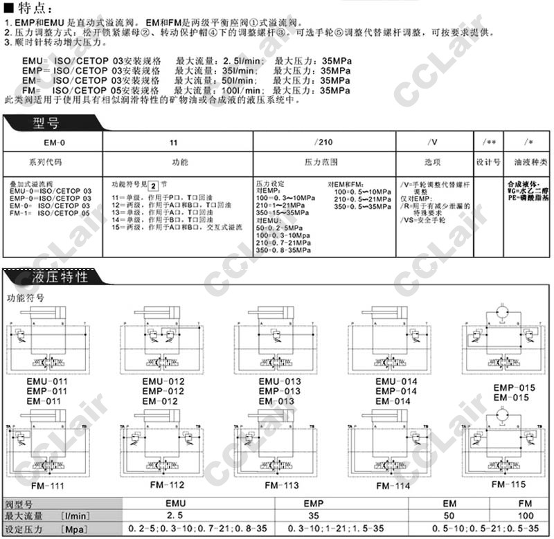 EMU-011/50,EMU-012/100,EMP-013/100,EM-014/100,FM-115/100,EMP-015/210,FM-111/350,疊加式溢流閥
