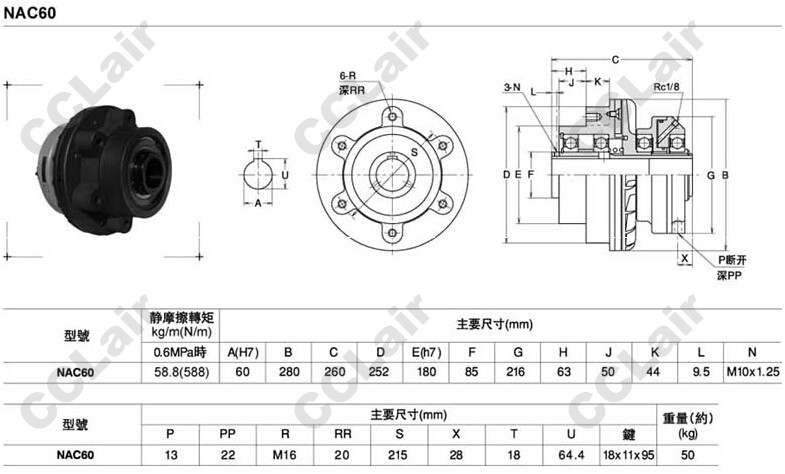 NAC60,通軸式離合器,CCLair