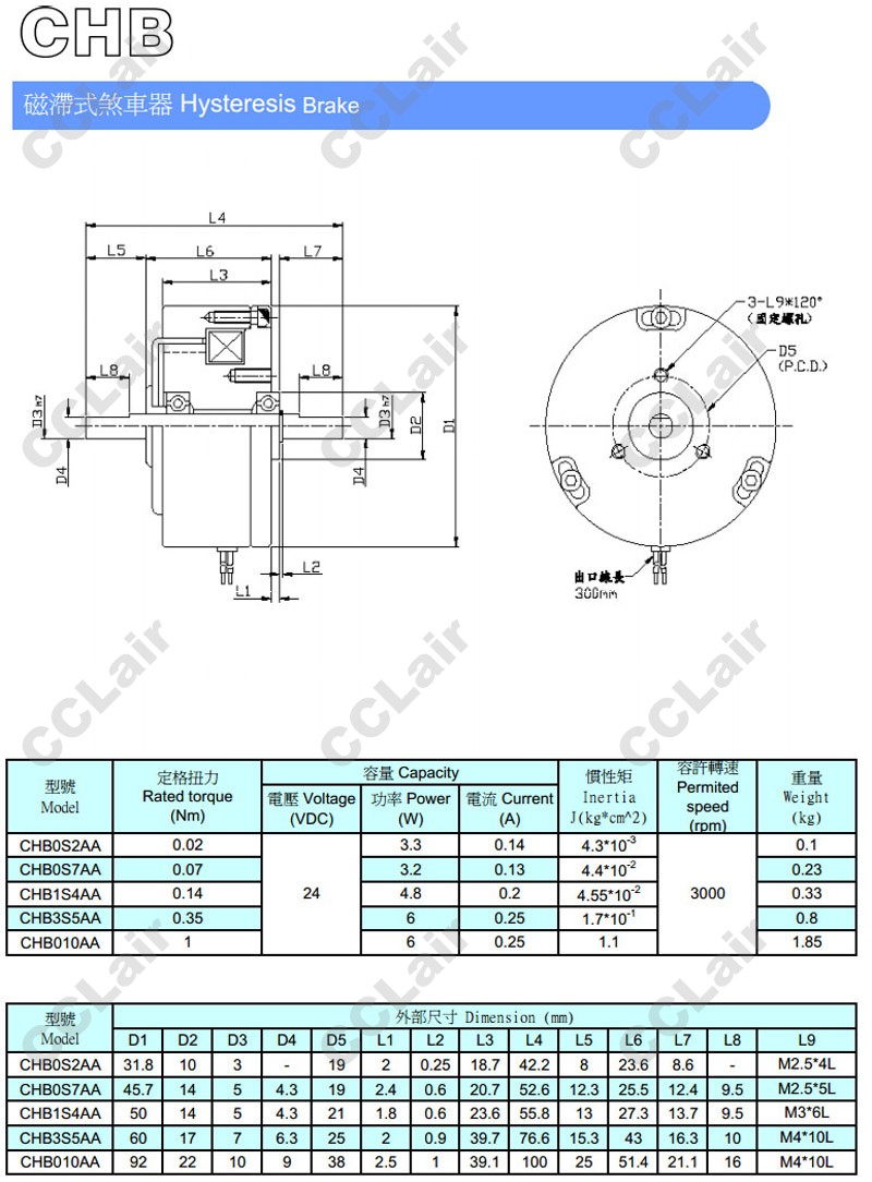 CHB0S2AA,CHB0S7AA,CHB1S4AA,CHB3S5AA,CHB010AA,磁滯式剎車器,CCLair