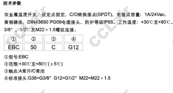 EBC50A-G38,EBC50A-G12,EBC50A-M22,EBC50C-G38,EBC50C-G12,EBC50C-M22,雙金屬溫度開(kāi)關(guān)