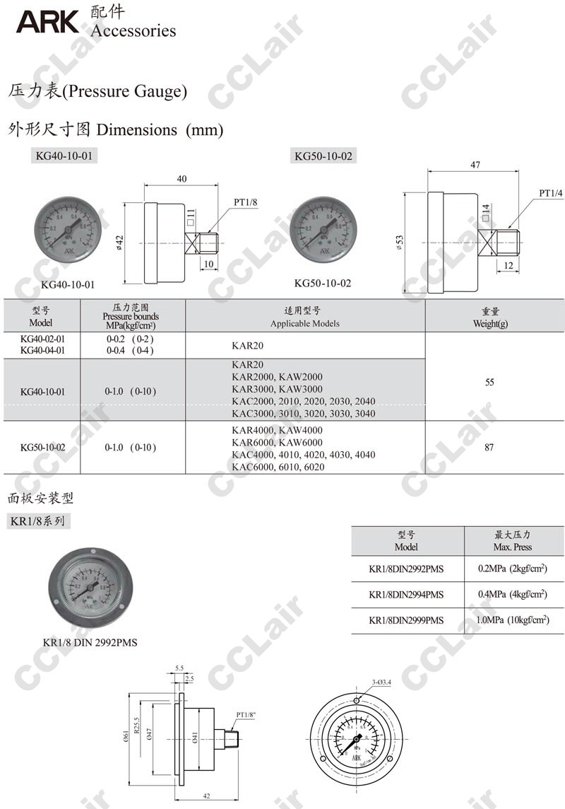 KG40-02-01,KG40-04-01,KG40-10-01,KG50-10-02,ARK壓力表