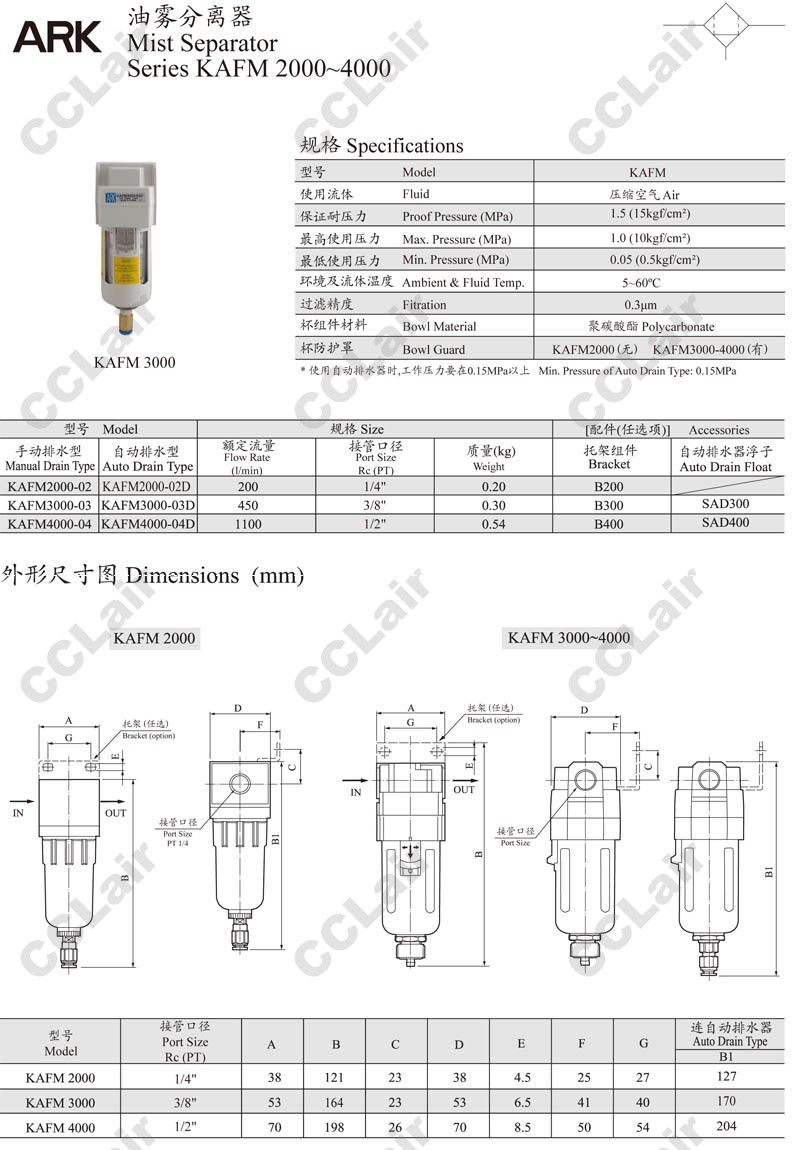 KAFM2000-02,KAFM2000-02D,KAFM3000-03,KAFM3000-03D,KAFM4000-04,KAFM4000-04D,ARK油霧分離器
