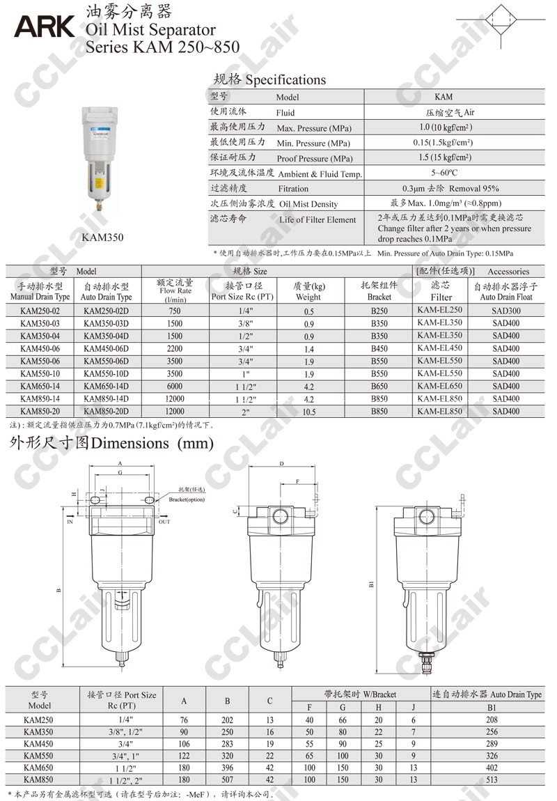 KAM250,KAM350,KAM450,KAM550,KAM650,KAM850,KAM850-20D,KAM450-06D,ARK油霧分離器