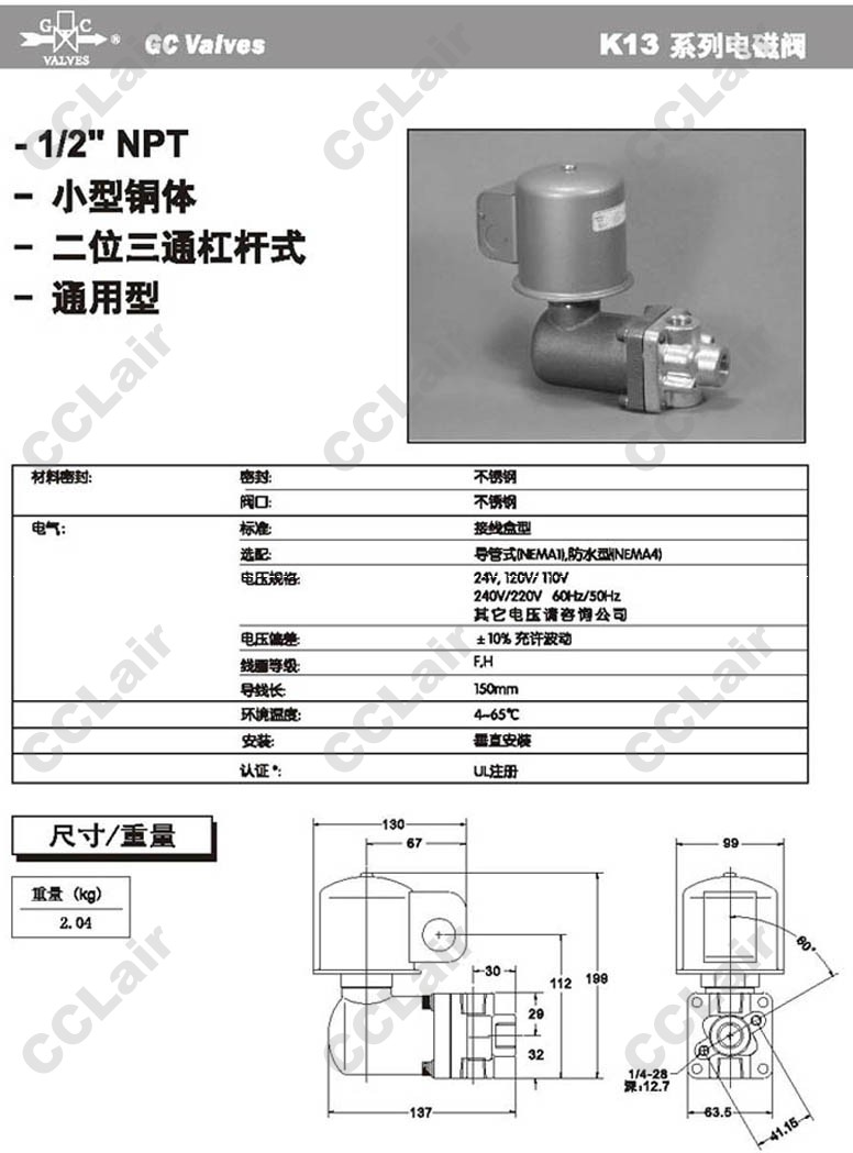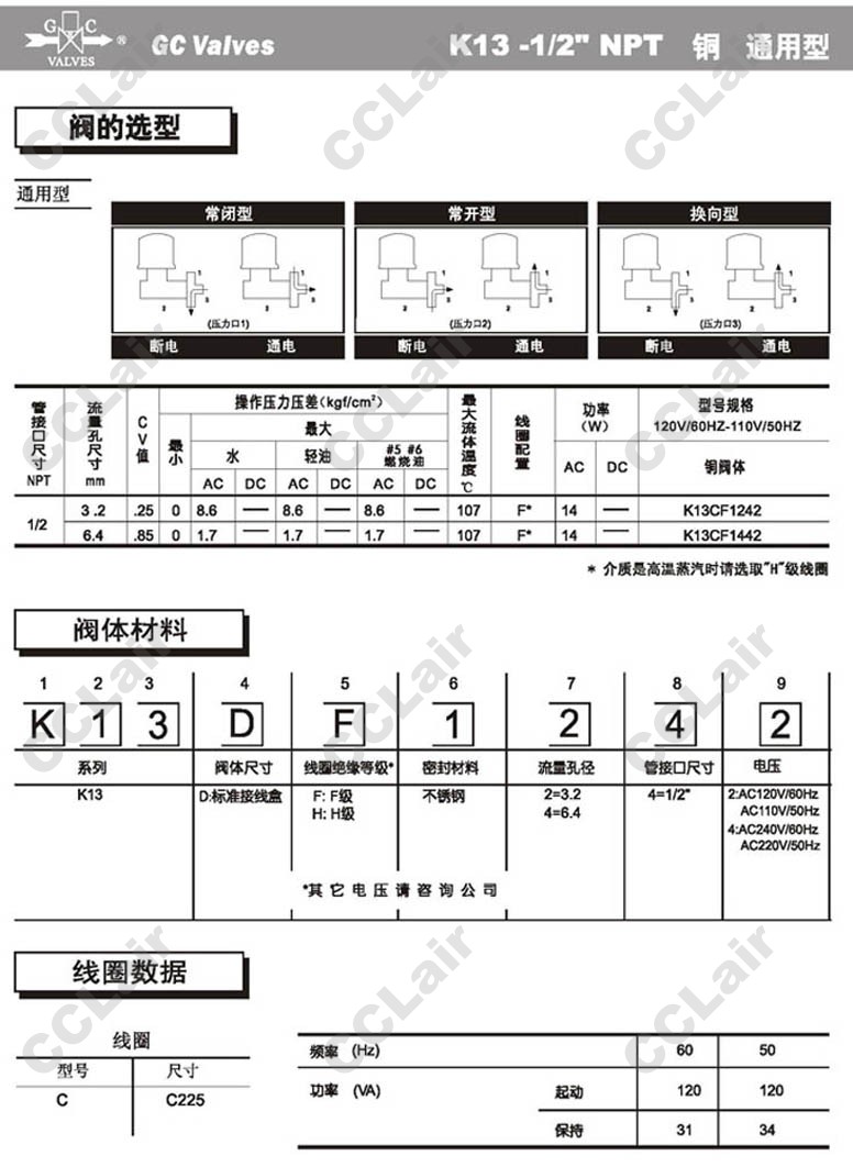 K13CF1242,K13CF1442,GC Valves二位三通杠桿式電磁閥