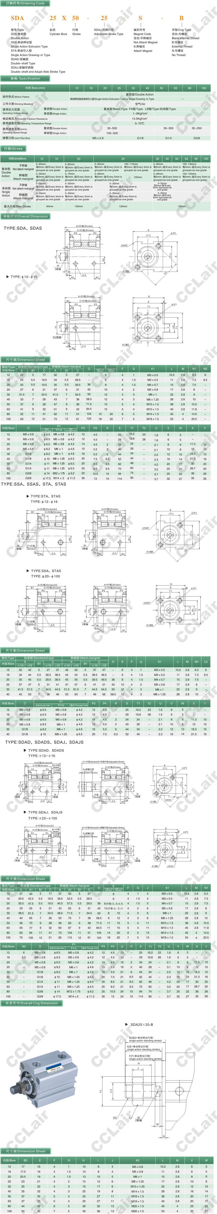 SDA12×20,SDA16×20,SDA20×20,SDA25×20,CCLair SDA32×20,SDA40×20,SDA50×20,SDA63×20,SDA100×20,
