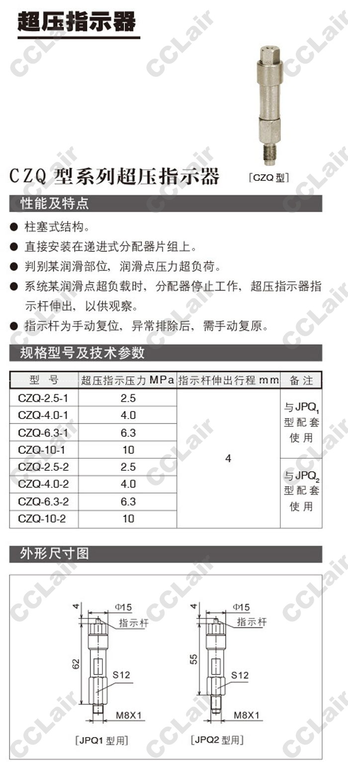 CZQ-2.5-1,CZQ-4.0-1,CZQ-6.3-1,CZQ-10-1,CZQ-2.5-2,CZQ-4.0-2,CZQ-6.3-2,CZQ-10-2,超壓指示器 |