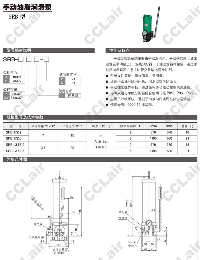 SRB-J7Z-2,SRB-J7Z-5,SRB-L3.5Z-2,SRB-L3.5Z-5,手動油脂潤滑泵
