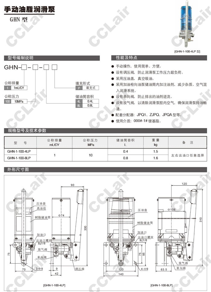 GHN-1-100-4LP,GHN-1-100-8LP,手動油脂潤滑泵