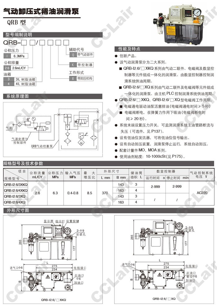 QRB-I2.6/3XKQ,QRB-I2.6/4XKQ,QRB-I2.6/3XQ,QRB-I2.6/4XQ,氣動卸壓式稀油潤滑泵 |