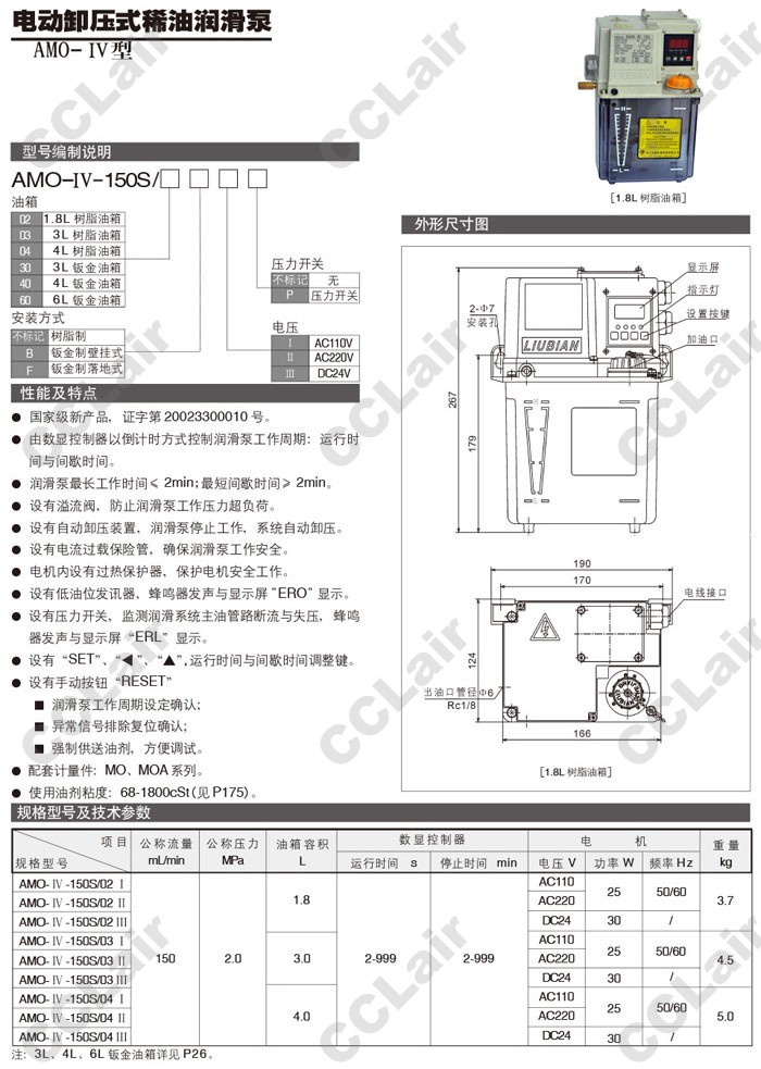 AMO-IV-150S,AMO-IV-150S/02I,AMO-IV-150S/02II,AMO-IV-150S/02III,電動(dòng)卸壓式稀油潤(rùn)滑泵