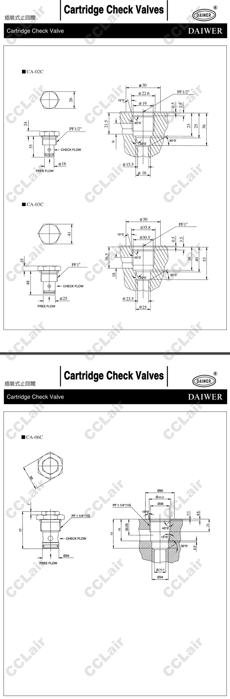 CA-02C,CA-03C,CA-06C,DAIWER插裝式止回閥