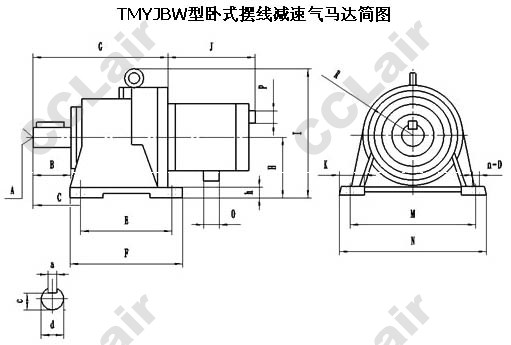 TMTJBL型立式擺線減速氣馬達(dá)安裝及外形尺寸表