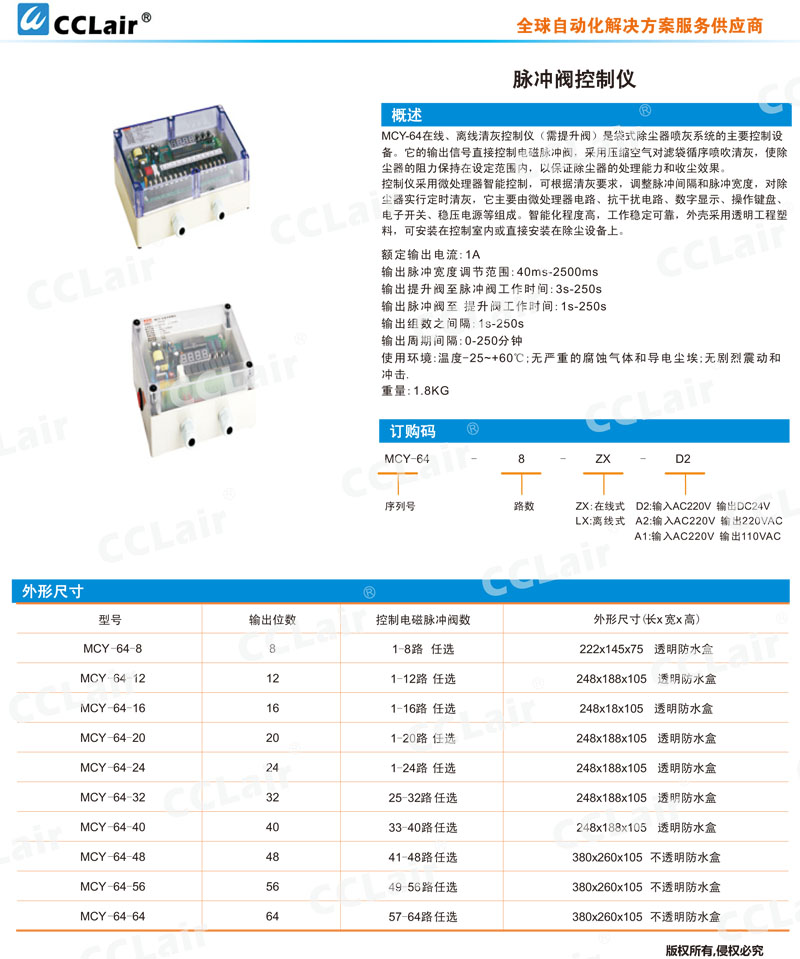 MCY-64-8,MCY-64-12,MCY-64-24,MCY-64-32,MCY-64-40,MCY-64-56,MCY-64-64,RMCY-64脈沖閥控制儀