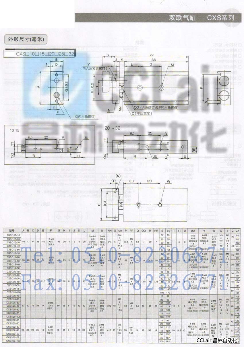 CXSM15-25-Y59B,CXSM15-30-Z73,CXSM15-30-Z76,雙聯(lián)氣缸