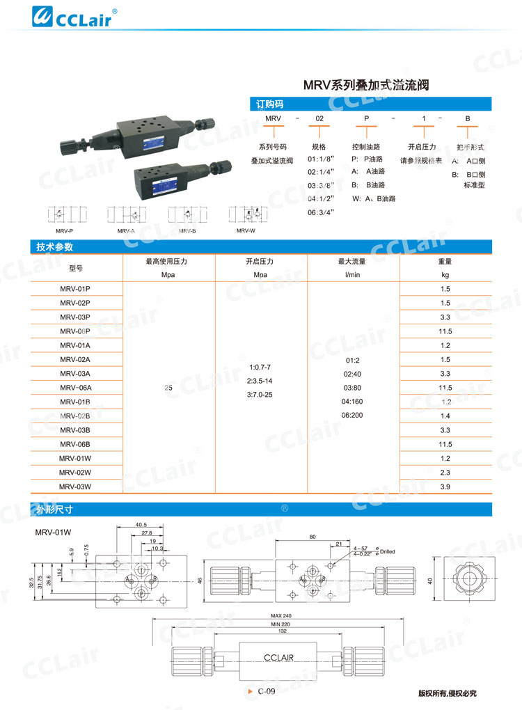 MRV-01,MRV-02,MRV-03,MRV-04,MRV-06,MRV-01P,MRV-02A,MRV-03W,MRV-06B,疊加式溢流閥