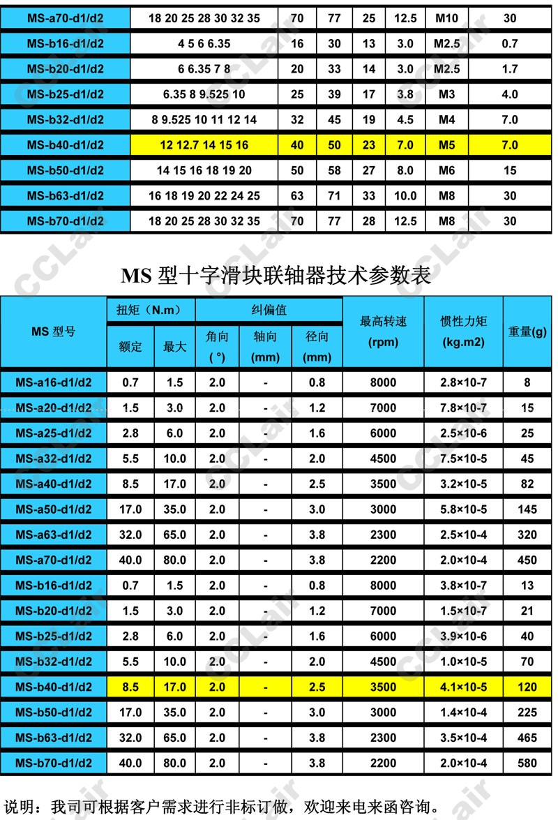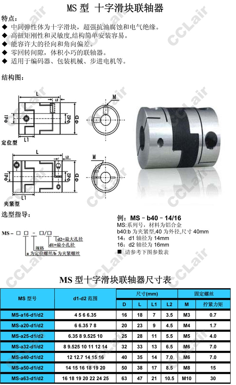 MS-a16,MS-a20,MS-a25,MS-a32,MS-a40,MS-a50,MS-a63,MS-a70,MS-a70-d1/d2,十字滑塊聯(lián)軸器