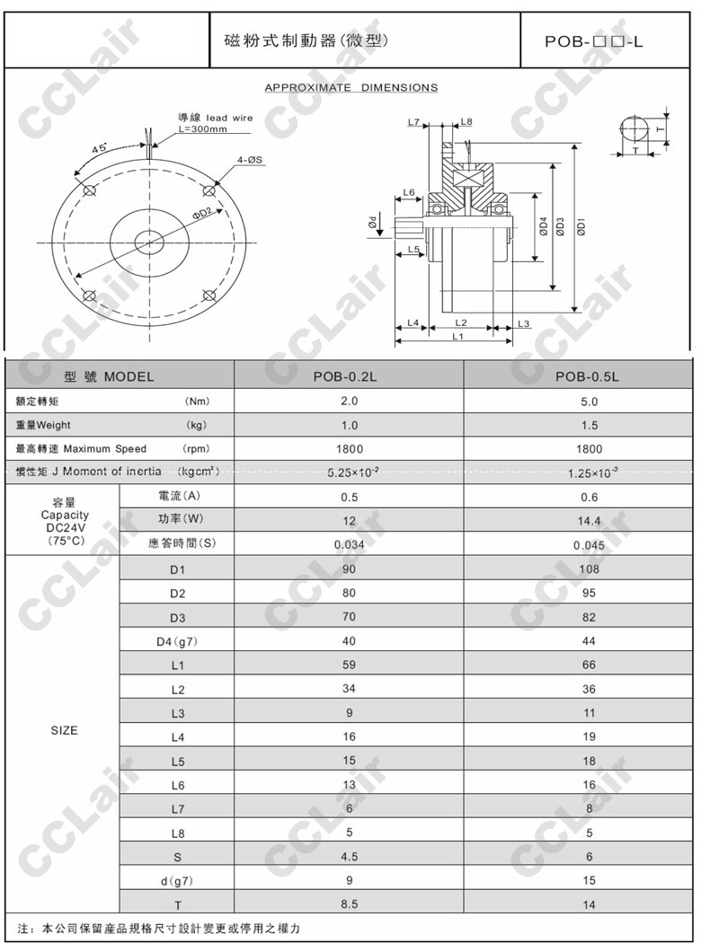 POB-0.2L,POB-0.5L,微型磁粉式制動器