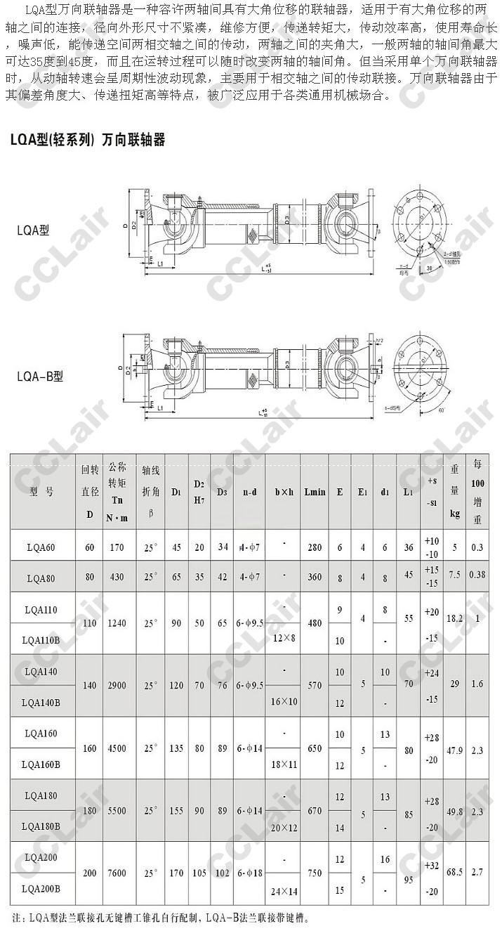 LQA60,LQA80,LQA110,LQA140B,LQA160,LQA160B,LQA180,LQA180B,LQA200,LQA200B,輕載萬向聯(lián)軸器 |