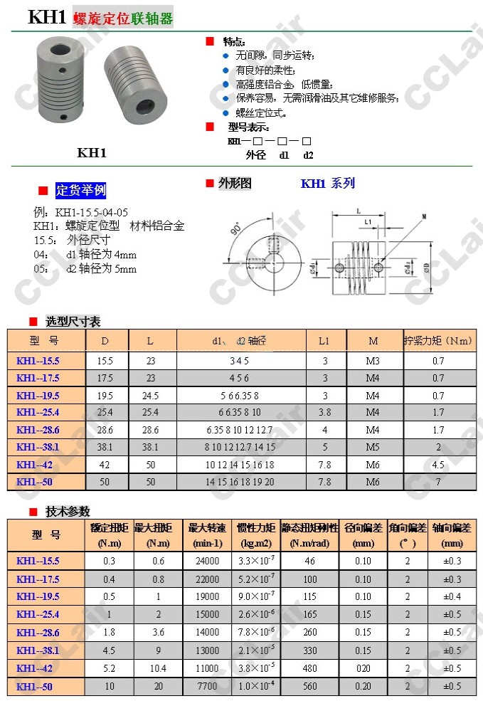 KH1-15.5,KH1-17.5,KH1-19.5,KH1-25.4,KH1-28.6,KH1-38.1,KH1-42,KH1-50,螺旋定位聯(lián)軸器