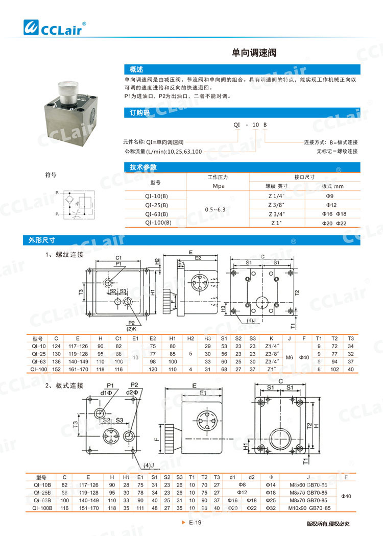 QI-10,QI-25,QI-63,QI-100,QI-10B,QI-25B,QI-63B,QI-100B,單向調(diào)速閥
