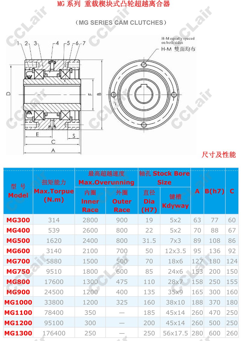 MG300,MG400,MG500,MG600,MG700,MG750,MG800,MG900,MG1000,MG1100,MG1200,MG1300,單向凸輪離合器