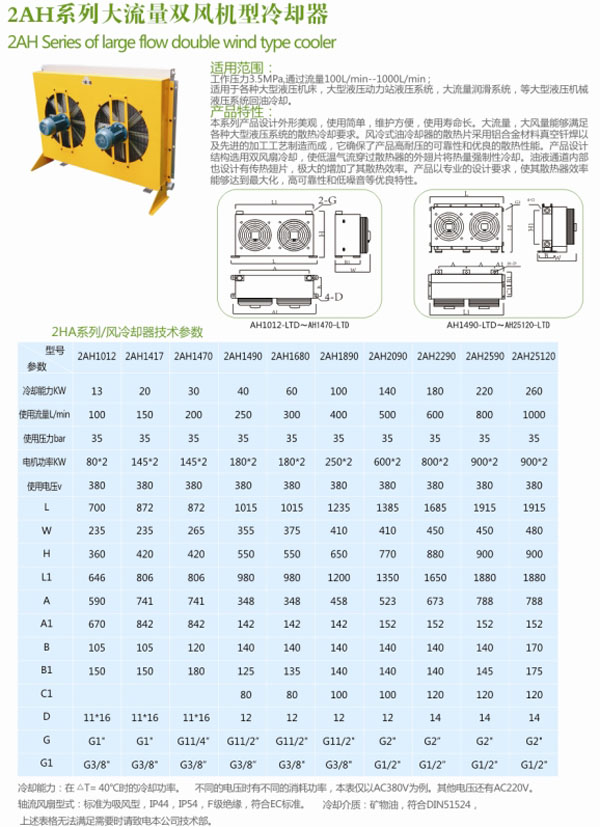 2AH1012,2AH1417,2AH1470,2AH1490,2AH1680,2AH2090,2AH2290,大流量雙機(jī)型冷卻器2AH2590,2AH25120,