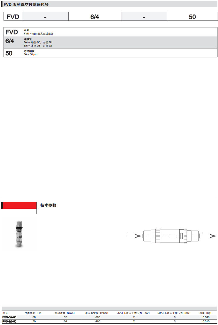 FVD-6/4-50,FVD-8/6-50,camozzi軸向型真空過(guò)濾器