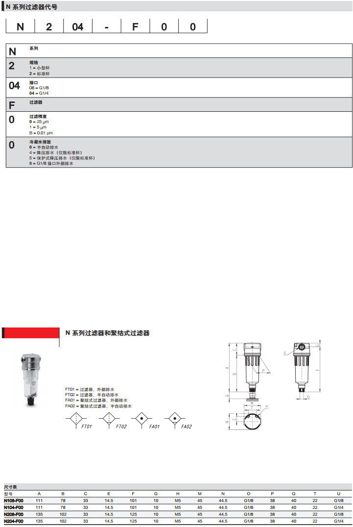 N108-F00,N104-F04,N208-F05,N204-F08,camozzi過濾器和聚結(jié)式過濾器