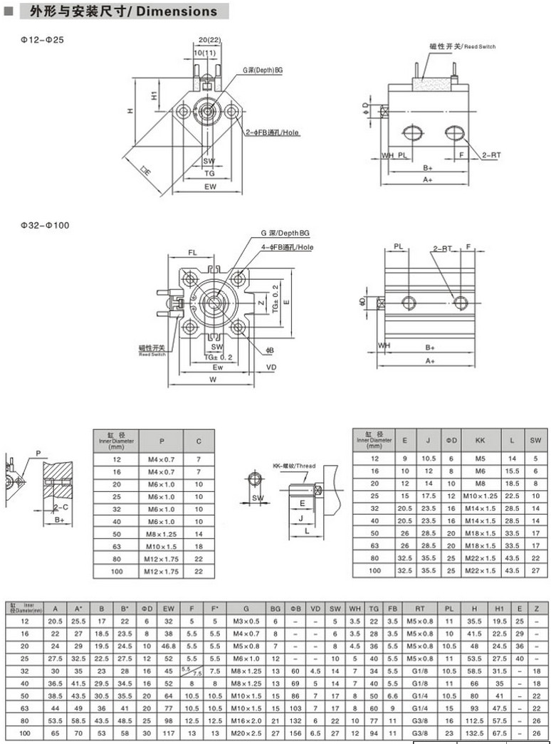 ECQ2B12-5,ECQ2B20-15,ECQ2B32-20,ECQ2B40-25,ECQ2B50-30,ECQ2B63-35,薄型氣缸