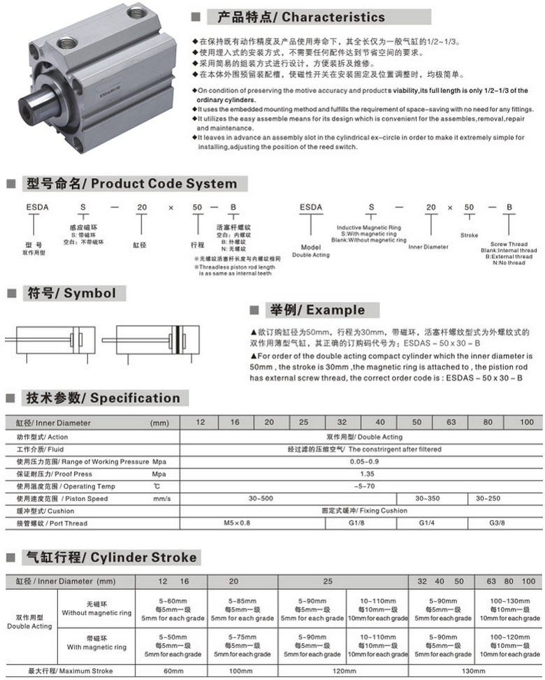 ESDA-50*50-B,ESDA-63*50-B,ESDA-80*50-B,ESDA-100*50-B,